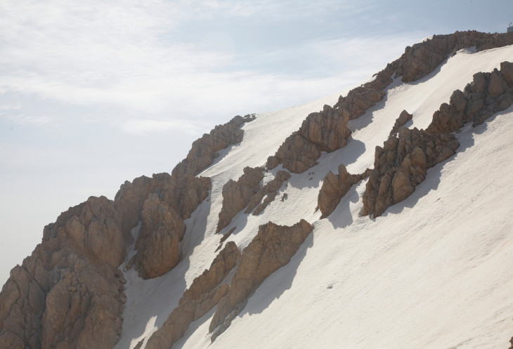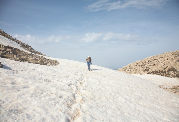 Тропа тоже иногда идет по снегу, хотя и очень немного. А от этого снега отражается солнце, и делается только еще жарче.