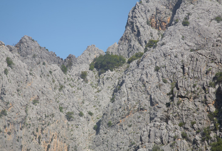 После Финике тропа начинает лезть круто вверх по колючим склонам. Тенистый сосновый лес кончился, джунгли, которые были перед Адрасаном – тоже. Теперь только мир колючек, где редкие деревца почти не дают тени.