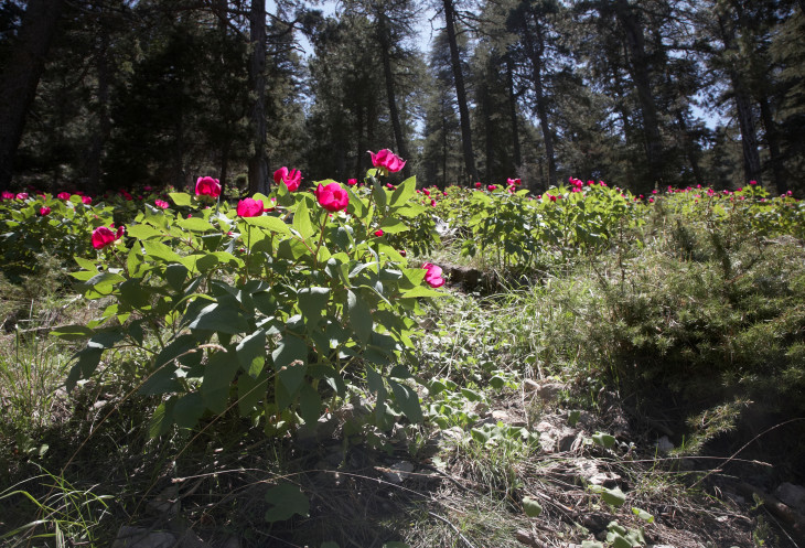 Чем выше поднимается дорога, тем больше в лесу появляется цветов. В какой-то момент встречаем указатель «Peony», а чуть выше и сами пионы – настоящие заросли ярко-розовых цветов посреди густого темного леса. Вряд ли указатель вел именно сюда, и вряд ли это слово на самом деле означало пионы, но пришли мы именно к ним.