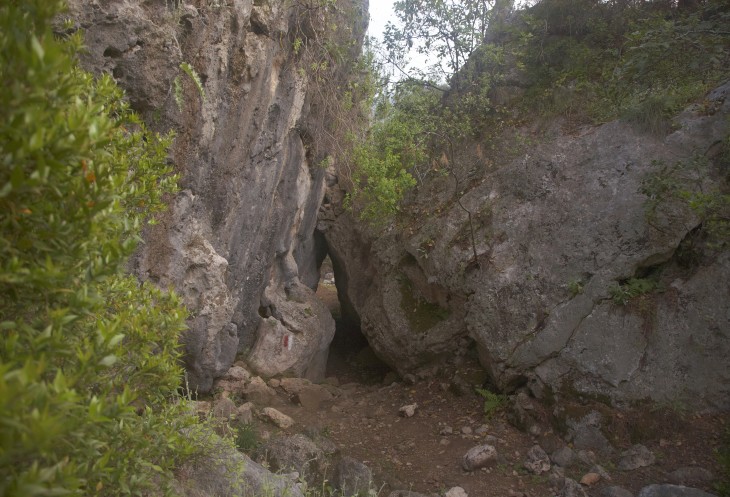 Пожалуй, единственное интересное, что мы видели на этом участке тропы – каменный тоннель между двумя скалами, через который тропа выходит на дорогу к Адрасану.