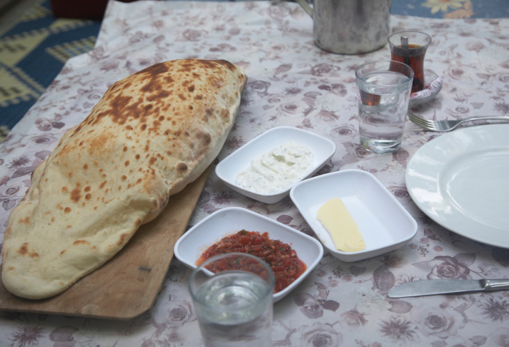 Обедаем уже около Яйлы Куздере – еще одна небольшая деревня. Здесь тоже есть цивилизация, а еще есть вода. Вообще здесь в любых деревнях можно найти воду. Говорят, что всегда можно попросить, но нам это ни разу не потребовалась – везде есть краны, из которых течет вода. Иногда прямо посреди деревни из земли торчит кран, иногда можно набрать воду около мечети.