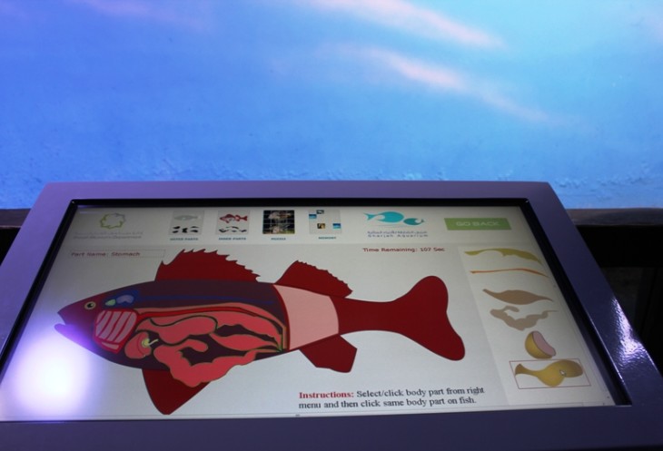 В аквариуме есть интерактичные стенды, где можно узнать всё об обитателях аквариума. Ещё мне очень понравился интерактивный стенд с играми для детей. Тут вам и строение рыб, и пазлы и игра парочки, ещё несколько игр. Весьма познавательно и интересно. Мы с Катюшей поиграли с удовольствием!