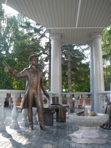 На пересечении Мира 75 /Кирова 26 – ротонда «Пушкин и Наталья»