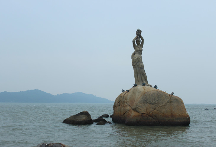 Вон около той красной опоры дорожка была, даже на машине по ней проехать можно было. Охранник в какой-то будке спал (мы утром рано экскурсию ту совершали), мы его своими глупыми расспросами беспокоить не стали. Почти до самой плотины добрались. А там собачка – с хорошего бычка размером будет. И злющая – чисто собака Баскервилей. Она ни как охранник: с утра уже не спала. Жрать хотела видно, как собака. Нас за еду приняла.