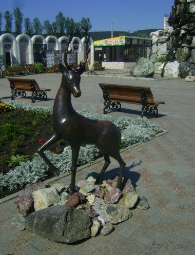 А вот и знаменитый козлик из "Серебряного копытца" - любимый персонаж детей. По-моему, этот козлик больше похож на оленёнка! Копытце у него серебряное, поэтому каждый старается потереть его - на удачу! А вдруг действительно прибыль (материальная!) "свалится" с неба ! :-)