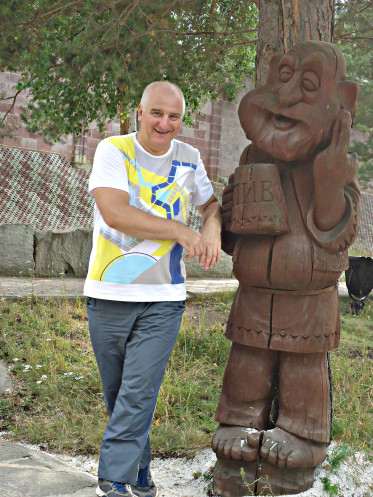 Ну как пройти мимо и не сфотографироваться по пути на Красную горку с такой весёлой деревянной скульптурой? А?