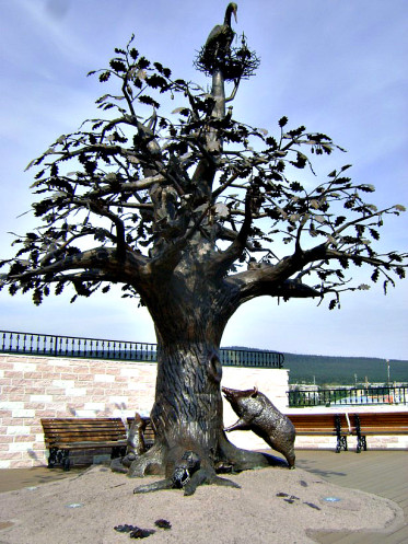 В центре смотровой площадки установлена 5 метровая ковано-сварная скульптура из меди "Дуб жизни", которая символизирует мощную жизненную силу, а также долголетие, могущество, плодородие, чистую духовную энергию, величие. На нём разместились 22 обитателя (птицы, животные, насекомые), найти их всех непросто.