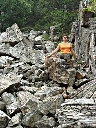 Заметьте, как улыбается Риточка! :-) Словно не было усталости и тяжёлого подъёма по отвесным скалам и затяжным курумам Александровской сопки... Вот что значит пройти "школу" Двуглавой сопки !!! Я думаю, что у друзей, которые год назад покорили эту вершину Таганая, картина возращения из поднебесья стоИт и сейчас перед глазами...