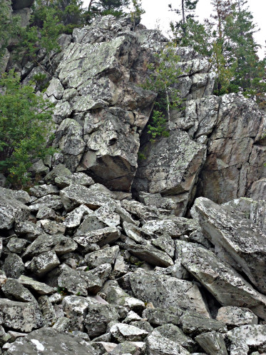 Спускались с Александровской сопки по её юго-восточному склону. Разумеется, и здесь были указатели движения. Спуск был полегче, чем подъём и надо обязательно отметить - не менее интересен. Скалы, покрытые мхом и цветными лишайниками, вековые ели и сосны, а также хрупкие деревца, упорно цепляющиеся за жизнь - всё это создавало величественную картину матушки - природы. Очень метко однажды кто-то сказал - Седой Урал!