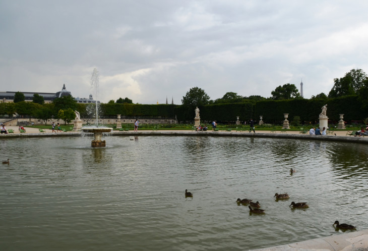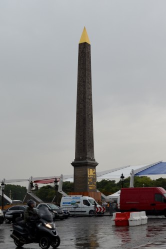 То ли дождь повлиял, то ли действительно ничего особенного мы не увидели, но общее впечатление от сада Тюильри у нас осталось довольно среднее и спокойное. После садов и парков Санкт-Петербурга, все выглядит достаточно просто и как-то серо (может просто солнца не хватало). И тут погода решила нас окончательно добить и начался настоящий ливень. Площадь Согласия оглядывали из укрытия, а потом перебегали её мелкими перебежками.
