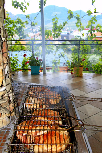 После прогулки ближе к пяти часам дня мы поехали на рынок за мясом, углем и продуктами. Когда мы готовили стейки на мангале и распространяли ароматы вокруг, солнце начало садиться за горизонт.