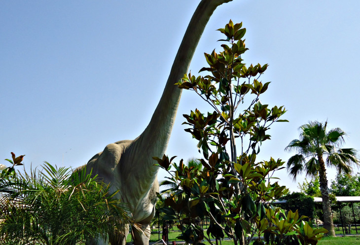 О динозаврах я ещё слышал в школе (рассказывали всё-таки на уроках чуть-чуть!), видел даже на картинках в книжках, более того - в далёком 1966 году (!) вышел фильм-фэнтези "Миллион лет до нашей эры", на который нас, тогдашних младших школьников, не всегда ещё и пускали - ведь фильм-то этот был не только про динозавров, а и про любовь! А теперь - совсем иное дело! Про динозавров можно почитать в интернете, купить прекрасно иллюстрированные книги, приобрести целые коллекции игрушек-динозавров, наконец - побывать в одном из динопарков России (надо признать, что их пока ещё немного!) или где-нибудь посетить их за рубежом .... Вот именно в одном из них мы побывали минувшим летом с внуком в Турции.