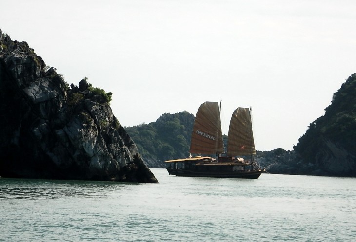 В своем же отельчике хлебнули чайку и отправились на экскурсию по бухте. Бухта Халонг признана объектом всемирного наследия ЮНЕСКО. Находится она в Тонкинском заливе Южно-Китайского моря, во вьетнамской провинции Куангнинь. Название бухты очень красиво звучит в переводе: "там, где дракон спустился в море" (легенду о возникновении множества островов в Википедии сможет изучить каждый кто захочет). Всего в бухте около 3000 островов самых разнообразных форм и размеров. На острове Кат-Ба, где нам выпала честь базироваться, находится национальный природный парк.