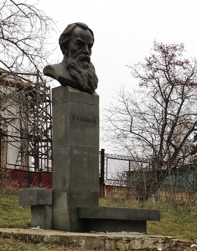 Здесь же- памятник-бюст П.П. Бажова. Возведен он в 1985 году, скульптор П.А.Сажин.