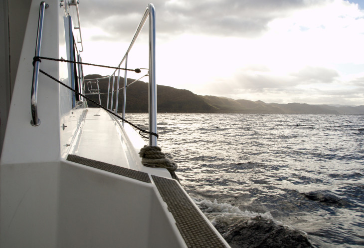 Есть здесь несколько точек, где продают билеты на разные лодки. Если лодки побольше есть поменьше, по времени отплытия все отличаются и немного по цене. Мы купили билет на небольшой частный катер, где было нас всего 6 человек, и отправились на прогулку по озеру. Но нам не повезло, чудовище мы не встретили..