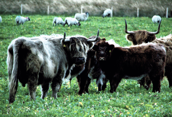 Неподалеку от замка увидели шотландских коров.Это высокогорная выносливая порода с плотной двухслойной шерстью.Густая челка создает преграду ветру, дождю и насекомым.