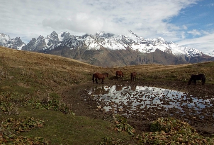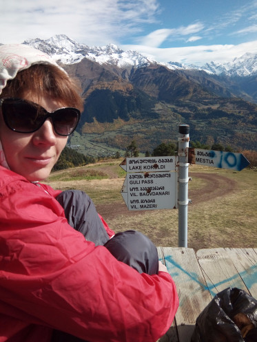 Тут нам встретилась собака, которая реально нас облаяла, что было непривычно. Позже я подумала, что она говорила на своем языке: «куда вы претесь, там ничего интересного, две лужицы и снег, а идти еще 5 км в одну сторону, и погода скоро испортится, глупые люди, отдайте мне свои бутерброды и идите обратно вниз, жрать оджахури пока все рестораны не закрылись…», но мы ее не понимали.