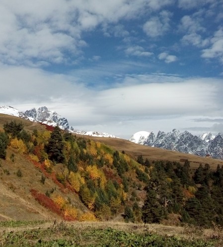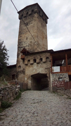 Удалось побывать в деревне, названия даже не знаю, в Нижней Сванетии, недалеко от Лентеки. В деревню вела очень непростая дорога, вроде недалеко, но серпантин, выложенный то ли шпалами, то ли брусковыми перемычками или прогонами, утомлял - в общем такая стиральная доска из железобетонных сборных изделий и по ней поднимаешься.