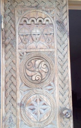 Выше всей деревни расположены часовня и кладбище. Такая планировка поселения наводит на мысль о иерархичном расположение строений и соответствии мирского духовному. На земле живут живые, выше на горе, пойти у самого неба часовня и еще выше лежат ушедшие в мир иной. На равнине и в больших разросшихся поселениях это не так очевидно. Неожиданным была супружеская могила, где мужчина уже лежал в земле, а женский портрет был датирован только рождением, и женщина смотрела не только с каменного изображения, но где-то еще жила и глядела в этот мир. Вид с горы от кладбища открывается великолепный, я даже спросила себя, хотела бы я здесь лежать - нет, слишком сурово, слишком высоко над миром. Сванская церковь невероятно лаконична, аскетична и брутальна. Это 4 стены, дверь, два очень узких маленьких окна – одно над дверью, второе в алтаре и двухскатная кровля. Все. Здесь была церковь святого Георгия, их в Грузии много, в данном случае это 11 век. Стянута снаружи легкими металлоконструкциями для предотвращения разрушения, была закрыта наглухо, похоже открывают ее редко. На двери икона, украшена уже пожелтевшими, но очень красивыми веточками, с похожими на черничные, листьями. Такие же по форме часовни и церкви встречаются не только в Сванетии.