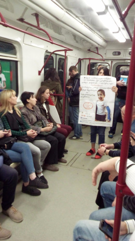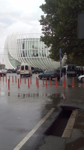 По выходу из метро нам встретилась маленькая девочка – лет 6-7 – она продавала красные шарики и кричала громко на всю площадь. В городе проходил праздник Тбилисоба, но об этом позже.