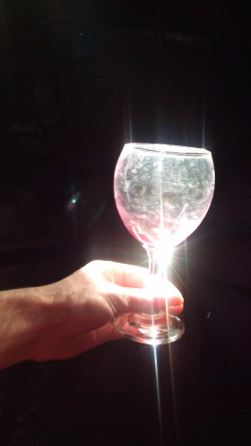 Внутри довольно темно. И поймав внезапный луч вечернего света мы подносим к нему стаканы и вино в них играет невероятными искрящимися красками.