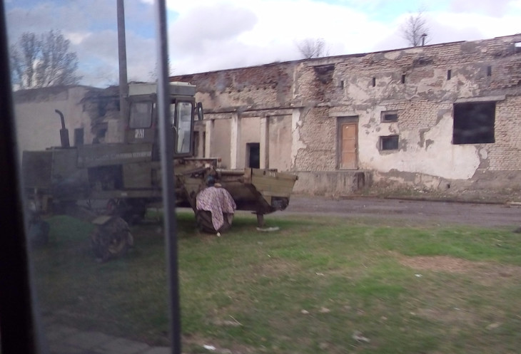 В более-менее крупных поселениях довольно много заброшенных домов, в основном советской постройки, и часто общественного назначения, и часто многоэтажныхе. В них выбиты не только стекла, но рамы целиком отсутствуют, в некоторых уже стены и перекрытия рушатся. Я сделала одну фотография, на мой взгляд, показывающую этот процесс в символической интерпретации.