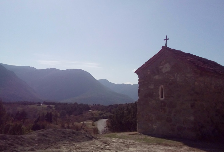 Из города Мцхета ведет дорога на гору. Выше города расположено кладбище. А если подняться еще выше – маленькая часовня, «сванской архитектуры» - так я назвала этот стиль.