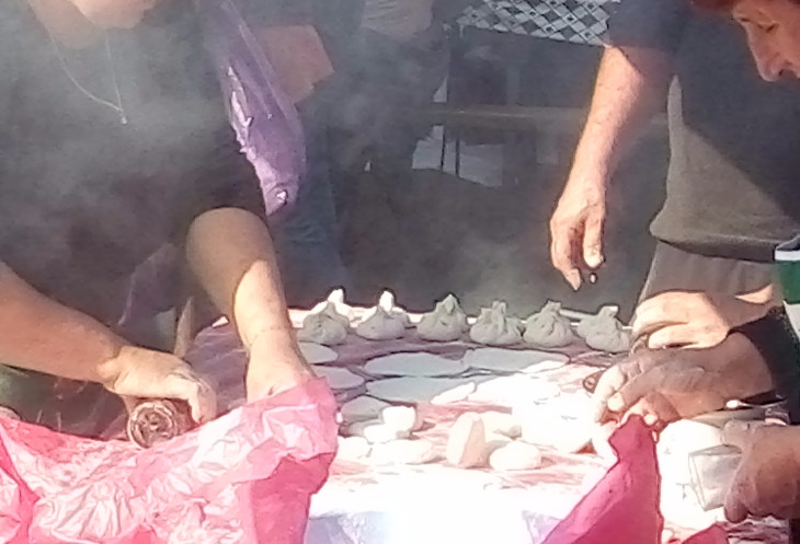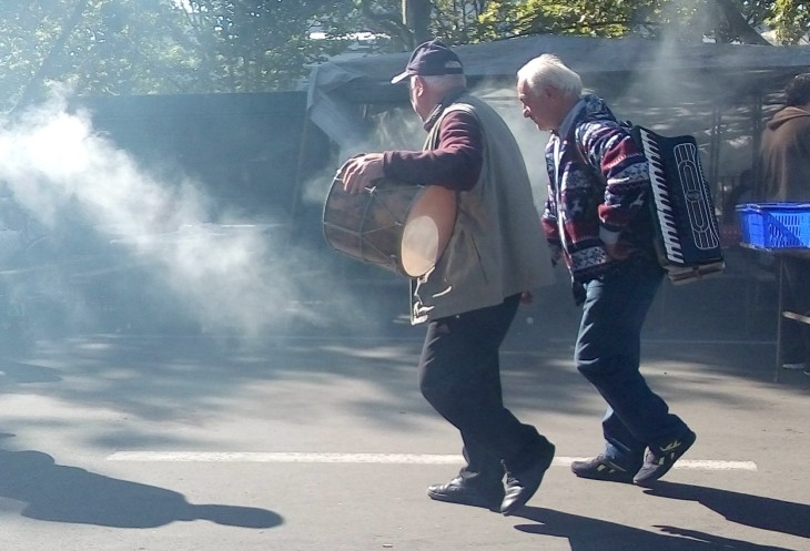На следующий день, это было воскресение, а праздник отмечается все выходные, мы решили произвести «полное погружение» и после рынка отправились прямо на «шашлычную площадь», заказали шашлык и стали наблюдать. Среди клубов дыма кипела жизнь. Музыканты ходили от одной группы столов к другой и пели.