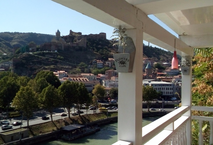 После столь насыщенного дня было чудесно пить вино на террасе пентхауса с видом на ночной город. В таком чудесном и необычном месте получилось поселиться. Кстати лифт ходил только до 15 этажа, и стоило это 5, 10 или 20 тетри (копеек), сколько оказалось под рукой - эта зверская машина не двигалась с места, пока в специальный ящичек не опускалась монетка, а путь в еще 2 этажа приходилось проделывать пешком. Так регулируется оплата за пользование лифтом, потому что жители не охотно платят за эту эфемерную, распложенную за порогом дома, услугу. Может и стоило перед горными треками размяться, но было очень лень, и потом - во мне проснулся ребенок, который обожает кидать монетки и смотреть, что будет дальше – откроется турникет метро, выпадет конфетка, поедет лифт.