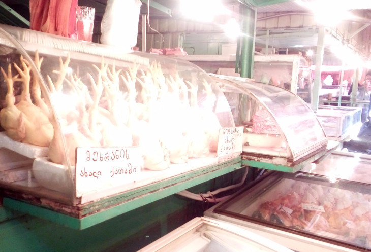 В пищевой части рынка разнообразие. Мясные отделы не для слабонервных. Особенно меня всегда «радовали» лежащие в витринах кверху лапами куры, ну очень натуралистично, аж не по себе. А висящие на крюках свиные головы так вообще впечатлили, пожалуй, я просто давно не была на рынках.