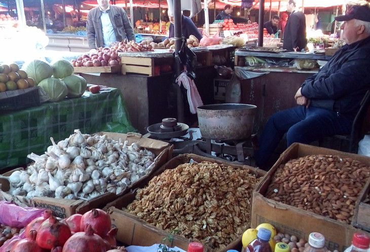 Сама бы я никогда не додумалась пойти на самый настоящий местный рынок, но «за компанию» творит удивительные вещи. И не пойти, а поехать на метро. Метро в Тбилиси мрачное, плохо освещенное, неухоженное, но зато оно есть. Народ в метро совершенно интернациональный. Пока ехали на рынок, в вагон зашла слепая женщина, и начала петь, очень мощно, аккомпанируя себе на пандури – это музыкальный трехструнный инструмент, «грузинская балалайка», или лютня. С ней сопровождающая. Они прошли по вагону, собирая пожертвования, или милостыню, вышли на станции, отправились в следующий вагон, я провожала их взглядом, в моей голове все звучала ее песня, а по щекам бежали слезы. Несколько раз проходили люди, собиравшие средства для помощи ребенку. Они также ходили по двое.