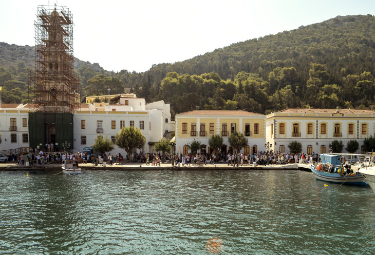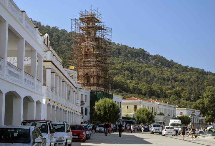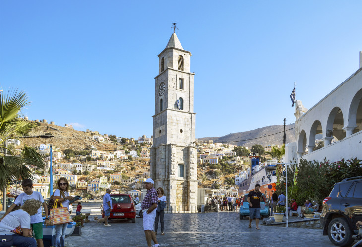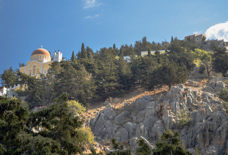 На Сими очень много церквей.Но самый главный храм это монастырь Архангела Михаила ,расположенный в бухте Панормитис, в южной части острова. Туда то наш паром и направляется.В монастыре мы сможем находится около часа,а потом поплывем дальше.