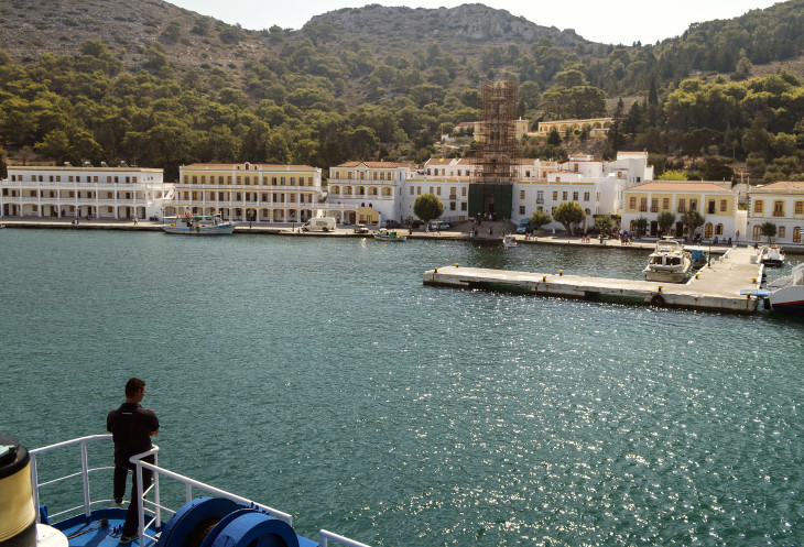 Ялос город- порт с красивой набережной и множеством магазинчиков,ресторанов и таверн. Сюда приходят и привозят многочисленных туристов паромы с Родоса и других островов,а также из Турции.Вот и мы причаливаем.