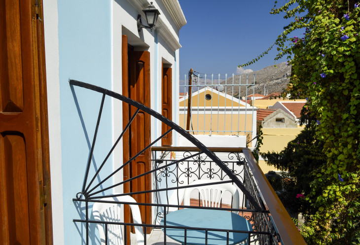 За три недели до поездки был забронирован на Booking.com номер-студио за 40 евро в апартаментах Kirilos studios.Самое странное во всей подготовке к путешествию было то,что мы не готовились к поездке на Сими)) Ни где,что находится,ни что вообще смотреть и куда идти...ничего! (Во сне мне снились только яркие игрушечные домики)).Узнали только,что в верхний город Хорио ходит автобус,а на пляжи бот-такси. Хотелось просто погулять по городу и посетить пляж Св.Георгия,окруженного скалами.