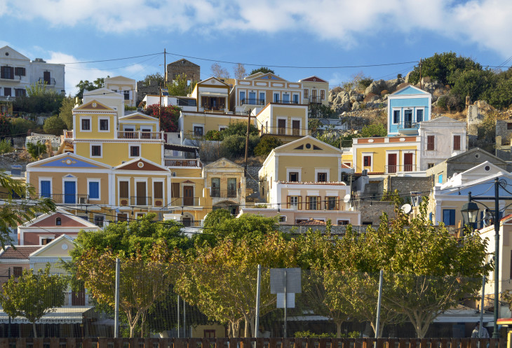 Остров Сими и островом то можно назвать с натяжкой)) Он такой крошечный,что иначе,как островок или даже островочек его и не назовешь)) Размер этого клочка суши всего 11,5 на 9 км.Берега изрезаны глубокими бухтами с маленькими пляжиками,а поверхность -сплошные горы и скалы,самая высокая из которых 616 метров над уровнем моря.Относится Сими к Додеканесскому архипелагу.
