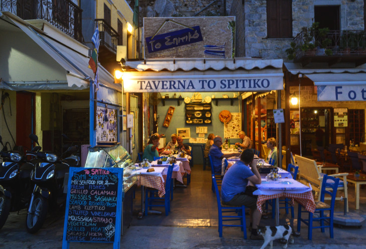 Здесь же ,на набережной заходим в небольшую таверну пообедать.