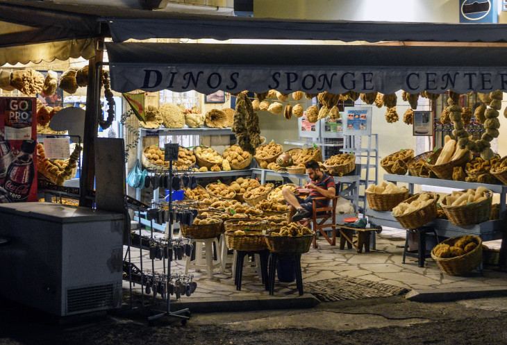 Губки на набережной продают на любой вкус.Мы так и не зашли в музей губок...
