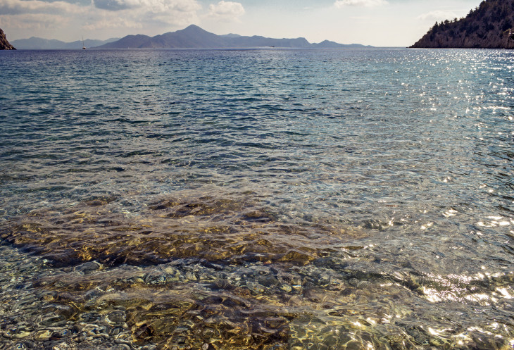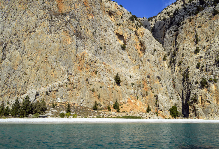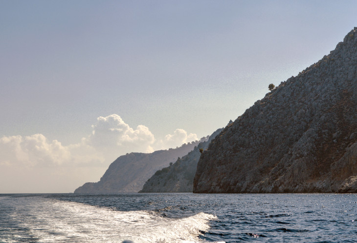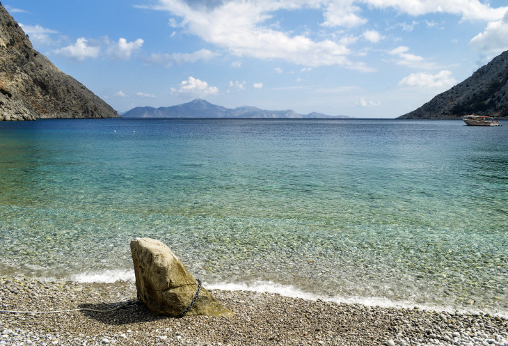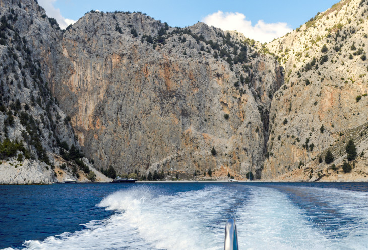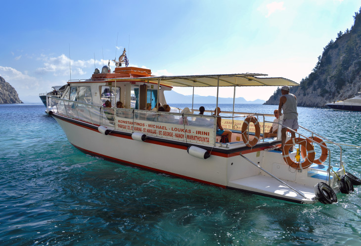 После получаса путешествия по водной стихии, из-за разреза двух скал волшебным образом открывается вид на сказочную бухту Гиалос.