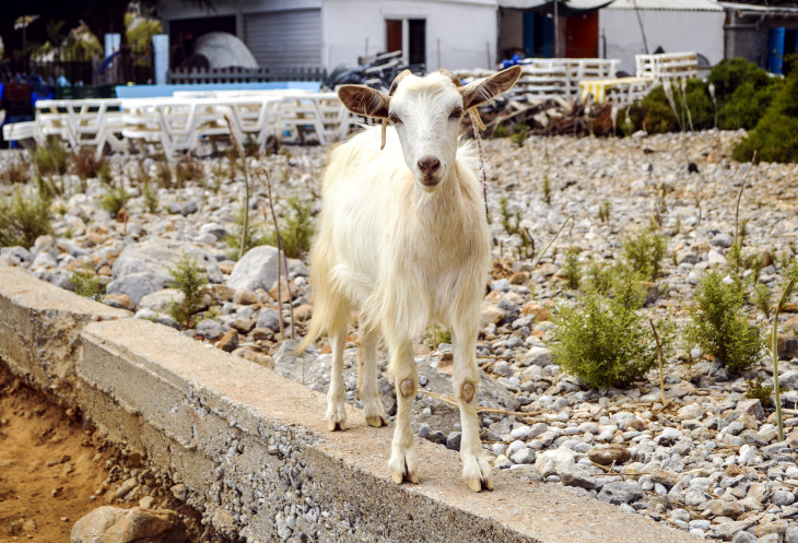 Мы уже проголодались и пошли сначала в таверну обедать.Но сначала надо пройти козью "таможню" на предмет вкусняшек))