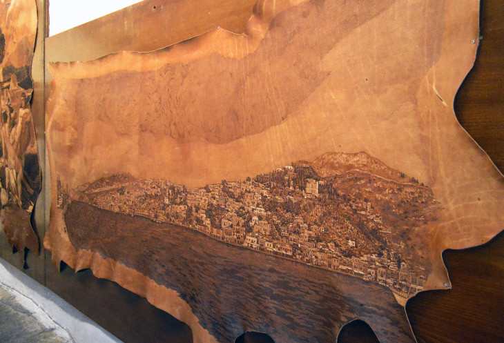 Рядом с ее магазинчиком расположился магазин кожаных изделий художника и обувных дел мастера Такиса.Это еще одна местная знаменитость.Кроме пошива сумок и обуви,господин Такис увлекается выжиганием по коже и творит просто шедевры.