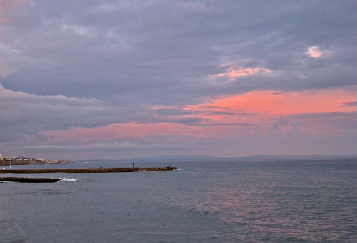 Это любят делать и местные жители. Хотя они скорее не прогуливаются здесь, а используют для спортивных занятий. Португальцы оказались очень спортивным народом. Вечер. Волны бьются о берег. Неспешно бредешь по пляжу. Вдруг тебя обгоняет кто-то, потом еще кто-то, потом кто-то бежит навстречу. Бегунов становится все больше и больше. К ним присоединяются собаки. Через некоторое время ощущение, что бегут почти все, кто вышел к океану. Это так заразительно, что я себя поймала на мысли, не «рвануть» ли за ними.