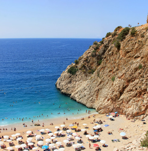 Следующий пункт программы - пляж Капуташ. Сразу хочу оговорить, что Капуташ по сути в эту экскурсию не входит. Только остановка на 5 мин для фотосъемки с обзорной площадки. Сам пляж чудесный, живописный, с прозрачной водой и мелким песком. Мой отпуск приходился на Курбан-байрам, поэтому на пляже было достаточно многолюдно. В другие дни там гораздо свободнее. Если Вы захотите отдохнуть на этом чудесном пляже, придется брать другую экскурсию или добираться общественным транспортом, но тогда Вы точно не успеете в Каш или Калкан. Хороший вариант — взять в аренду автомобиль, но у меня нет прав, увы...