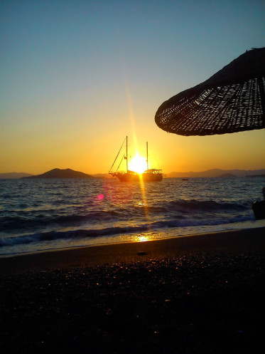 Но вот все неприятности позади и мы приземлились в Даламане. Сразу меня окутал уже ставший непривычным жаркий воздух (лета в 2017 г. в СПб так и не было, как впрочем и в 2016, и в 2015). Это такое блаженство после холодных дождливых дней! Даламан - это конечно хорошо, но мне надо в Чалыш. Всех пакетников забрал трансфер и я в аэропорту осталась одна. Я знала, что от аэропорта до автовокзала курсирует шаттл Хаваш (Havas), но как я выяснила в их офисе, автобусы подаются под рейсы Turkish Airlines, а ближайший будет только через 2 часа... (Ну почему я не полетела туркишами??? - спросила я себя в очередной раз, - уже бы загорала на пляже) Столько ждать я была не готова и пошла искать такси. Тариф Даламан - Фетхие 130 лир (около 2,5 тыс.руб.), учитывая расстояние не так и дорого, но я же экономная... После того как я вынесла мозг всем таксистам, один предложил мне за сорок лир довезти до автовокзала Даламана, откуда ходят автобусы (кажется 7 лир, уже не помню) до автовокзала Фетхие, а оттуда долмуши до Чалыша. Вот так я и поехала))) К вечеру была в отеле, заселилась в номер и бегом помчалась на пляж сделать заплыв и полюбоваться закатом. Вот фото первого дня, вернее вечера: