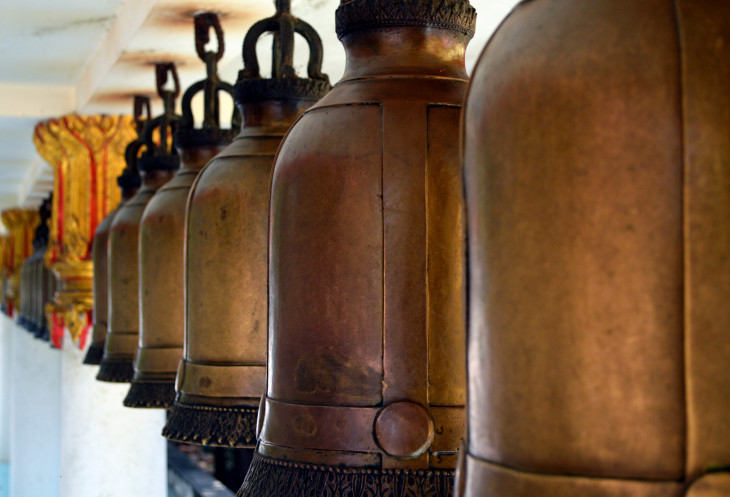 Потом уже пошли к самому золотому Будде.Сначала надо почистить карму ,получив благословение у монахов (за денюшку,конечно)) и позвонив во все колокола.К монахам мы не пошли,а в колокола то позвонили))