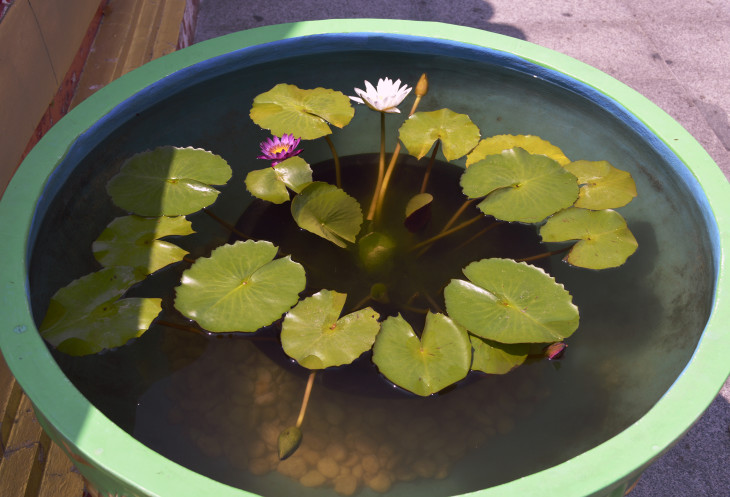 А еще возле лестницы стоят чаши ,в которых растут лилии и плавают золотые рыбки))