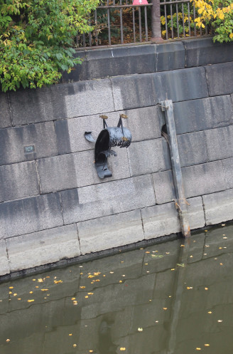 Напротив футштока, на стене Обводного канала, недалеко от Синего моста, очень оригинальный и символичный памятник – блокадной рыбке колЮ́шке (открыт 8 мая 2005 года к 60-летию Победы в Великой Отечественной войне).