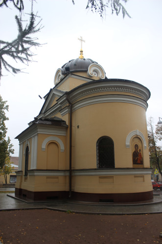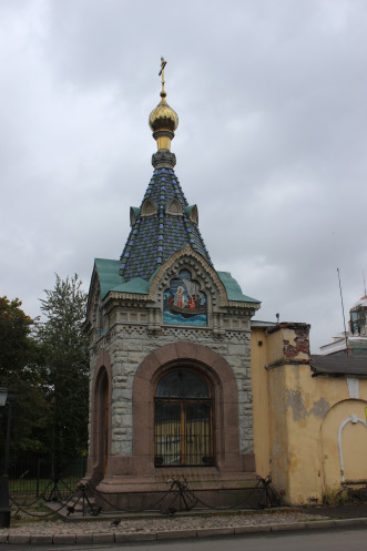 В самом начале Тулонской аллеи, у здания гауптвахты и некогда существовавших на этом месте Петербургских (Ленинградских) ворот, стоит чудная часовня «Спас-на-Водах»