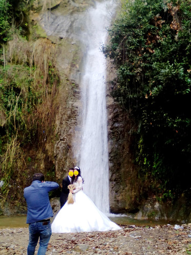 Правда, со слов местных жителей, воду там можно застать только в зимне-весенний период, а летом все пересыхает. В январе мы получили шикарный вид. Одновременно, но не вместе с нами, приехали к водопаду на свадебную фотосессию турецкие молодожены