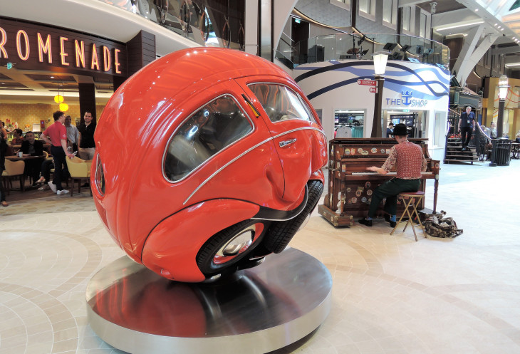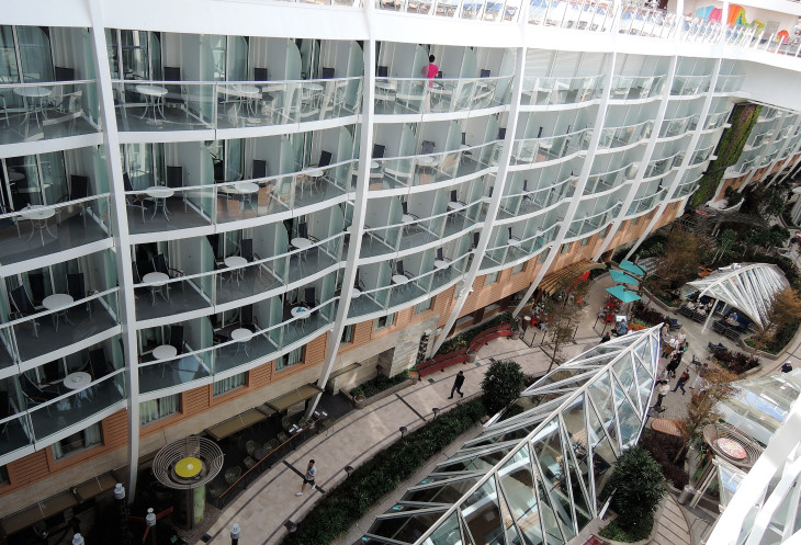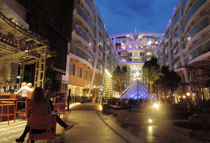 С тарзанки - на водную горку, из Акватеатра на дискотеку, из бара-лифта - в бар, где коктейли смешивают роботы, из Центрального парка с настоящими деревьями и цветами - в солярий или в один из 22 ресторанов, который еще нужно выбрать! Я по-хорошему уставала, но не давала себе спуску, чтобы побольше попробовать и увидеть, ведь я здесь ради этого. Единственное усовершенствование, которое я добавила бы супер-лайнеру, - бегущие дорожки, как в аэропорту, чтобы быстрее попадать в каюту (коридоры-то длиннющие!), ставить на зарядку один фотоаппарат, брать второй, и снова пускаться в “городские” приключения на борту.