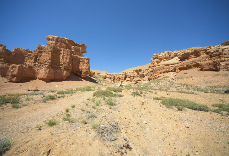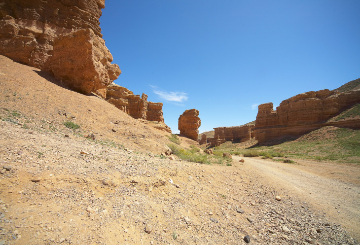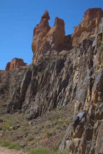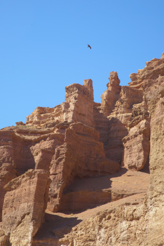 Чарынский каньон – это старое сухое русло реки, которая в ярко-красных глинах промыла огромный каньон со стенами самых причудливых форм. Одни скалы похожи на огромные стены, другие на причудливых великанов, третьи – на какие-то чаши. Высота этих стен достигает 300 метров.
